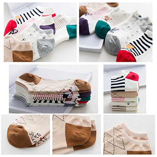 -. Feature : Size: Stretchy no show socks fit US size 5-7.5 / Style: Casual low cut ankle socks, suit for every women, girls, daughter. / Package: 5 Pairs (5 different colors) for each style / Occasions: these casual ankle socks are great for indoor & outdoor activity, for athletic use, matching different shoes for all occasions. / Note: Please be reminded that due to lighting effects and monitor's brightness/contrast settings etc, there might be some slight differences in the color tone of the website's photo and the actual item