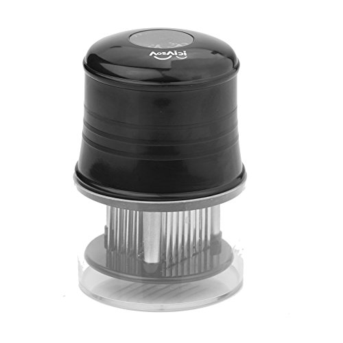 Studio : Shenzhen Aosaidi Technology Co., LTD Publisher : Shenzhen Aosaidi Technology Co., LTD Product Description Aosaidi Loose Meat Needle Tenderizer-56 Stainless Steel Blades with Security Lock ,Professional Quality Kitchen Cooking Tool for Steak,Chicken,Fish and Pork Features: Brand new and high quality 54 stainless steel blades with hard texture, corrosion resistance and not easy to get rusty. Double protectiove cover can resist dust and prevent scratching the blades or injuring person. ABS hand press handle with spring design will bring you much convenience. The side of the hand press handle has unlocking and shutting button for operating the item. Indispensible for dialy life which can shorten the cooking time. Suitable for home kitchen, hotel, restaurant and so on. Specification: Color: As shown in the picture. Size As shown in the picture. Item Weight: 0.49lb Package Weight: 0.57lb Material: Stainless steel blade ABS How to use: 1.Please cleaned thoroughly for the first time using. 2.Place the steak, pork or other cut of meat on the cutting board and remove the protective cover. 3.Gently press the item on the top of meat and repeat the process over the whole meat.(Avoid the bones) 4.Turn the piece of meat over, repeat this on the other side for some thicker meat. 5.Cleaned after each use and can be cleaned in dishwasher with the water temperature does not exceed 80 degrees. 6.Can put some edible oil or lard on steel pipe of both sides for using. Note: 1.Please place the meat on the cutting board to prevent injuring the blades. 2.Eliminate the bones or thaw frozen meat firstly before you use the item to prevent breaking the blades. 3.Don't put your hands on blades when you use this item. 0
