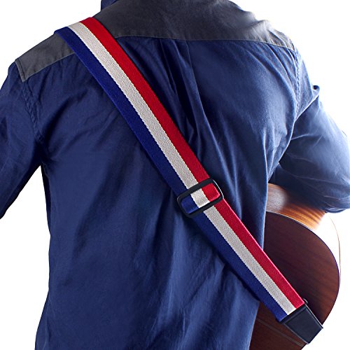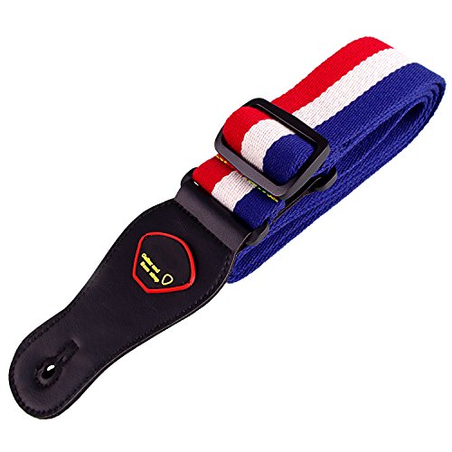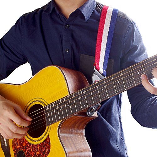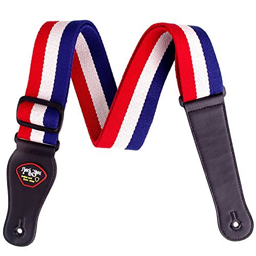 Mugig Guitar Strap, National Flag Printed Adjustable Soft Cotton Guitar Strap with Leather Ends (France)