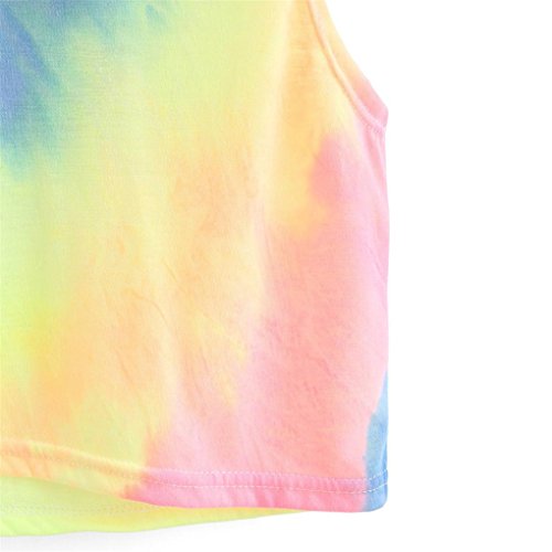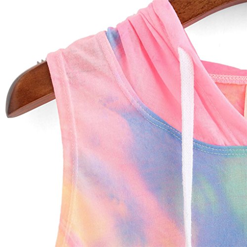 Women Vest,Haoricu 2017 Women Fashion Rainbow Print Hooded Crop Sleeveless Short T Shirt Tops (Asian Size:S, Blue)