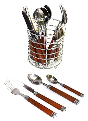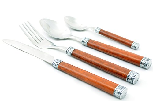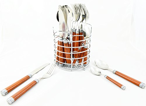 Nature Home Decor RE6128 Rainbow Elite Collection Flatware Set of 24-Piece Service of Six with Elegant Dark Wood Finish Resin Handles and Stainless Steel Storage Caddy