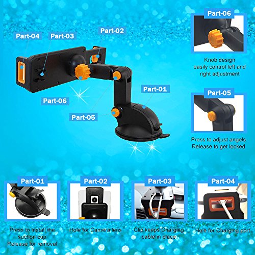 Joints of arms with easy One-Press-Adjustment knob design, Just press to adjust the arms' angles and release to get it locked. The car phone holder is easy to rotation and adjustment the angle for your safety and preference. And it is easy to change the height what you like,just press the button.