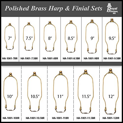 These two 10 inch heavy duty polished brass harp and finial Sets are part of Royal Designs lamp accessories collection and is perfect for anyone looking to upgrade or replace parts of a variety of lamps.Feature