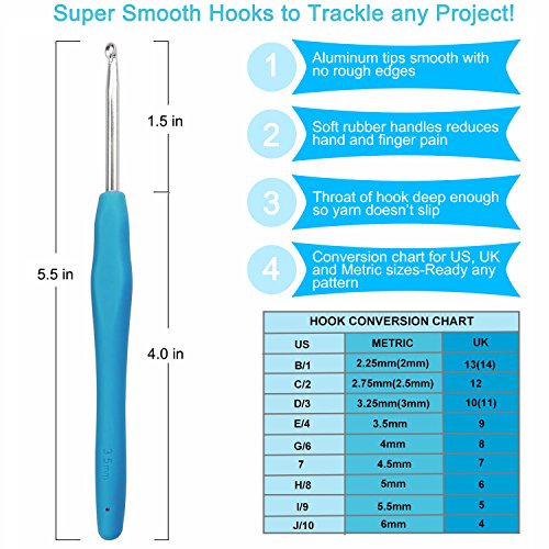 EXCELLENT QUALITY - This crochet hooks are made of premium quality aluminum and non-slip ergonomic rubber handles,easy grip and feel comfortable.
