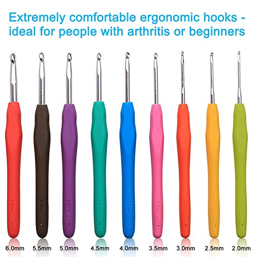 ERGONOMIC DESIGN - Ergonomically designed smooth and soft handles encourage hours of comfortable crocheting and help to avoid hand fatigue.Perfect for Arthritic.