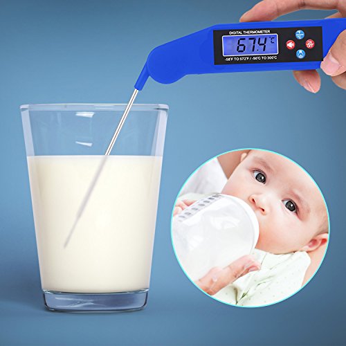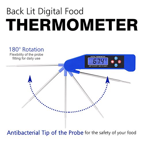 ☆【CERTIFIED PRODUCT】It has long antibacterial probe with size of 10.6*0.9*1.41 inches which will keep you away from dangerous and stay safe. Kitchen Thermometer with foldable probe design folds away easily and locks into base for portability and storage.