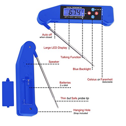 Food Thermometer - Best Digital Meat Thermometer with Talking functions, Electric Cooking thermometer for Kitchen and Outdoor, Instant Read Thermometer(Blue)