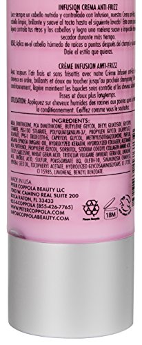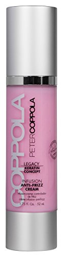 Coppola Infusion Anti Frizz Cream keeps hair tidy, shiny and soft-to-the-touch with this deeply conditioning, ultra lightweight cream. Infusion Anti-Frizz Cream keeps curls under control and cuts blowdry time while creating a barrier to block humidity for hair that is sleek and smooth until your next shampoo. Ultra-light formula for long lasting frizz-free hair Creates a shield keeping humidity out Adds instant shine Allows for a faster and easier smoothing routine Keratin and Ceramides build strength and retain moistureFeature