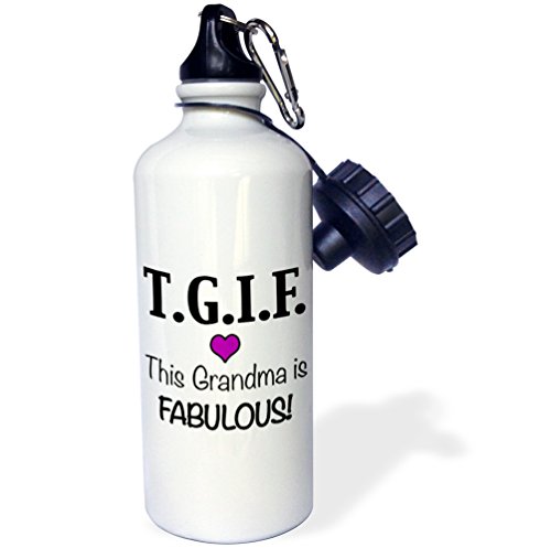 3dRose wb_202948_1 TGIF This Grandma is Fabulous, Purple Sports Water Bottle, 21 oz, White