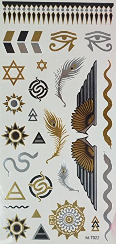 GGSELL Golden and silver and black Metallic Temporary tattoos Jewelry, sun totoem, feather, snake, wings and eyes