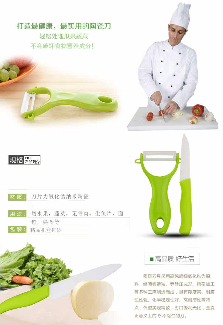 Very Sharp , Ease to Use, Easy to Clean, Pure , Light, and do not require Sharpening。 Color:Random