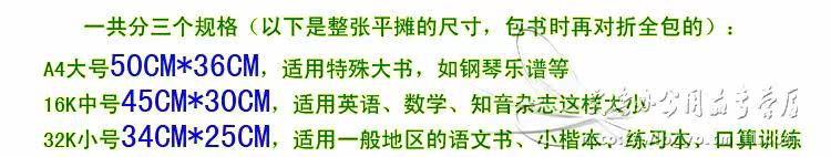 点击购买中号45CM*30CM(1包10张,可包16K的课本)