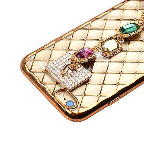 iphone 6s Plus Case Mate Gsung Jewelry Chain Swarovski Cell Phone Case for iPhone 6 Plus (Diamond Chain Rose-plus)