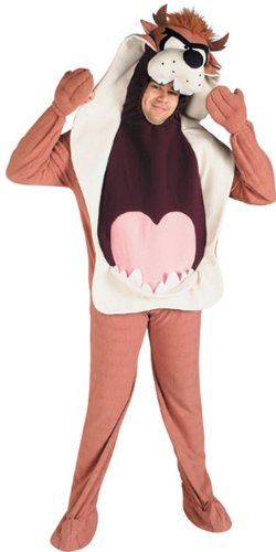 -. Feature : Deluxe Tasmanian Devil character costume jumpsuit with soft sculptured headpiece / Available in one size that fits up to men's size 46 jacket / Officially licensed Looney Tunes costume, buy with confidence directly from Amazon, a trademark of Warner Brothers / Create your own Looney Tunes cartoon with Sylvester the Cat, Tweety Bird, Bugs Bunny, and Tasmanian Devil costumes / Makes a great group or family costume