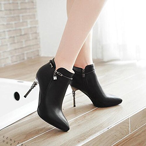 (Mofri)/Women's/Boots/DIRECT FROM USA/Mofri Women's Dressy Strap Pointed Toe Side Zipper Short Boots Stiletto High Heels Ankle Booties