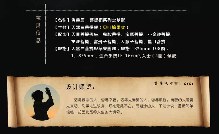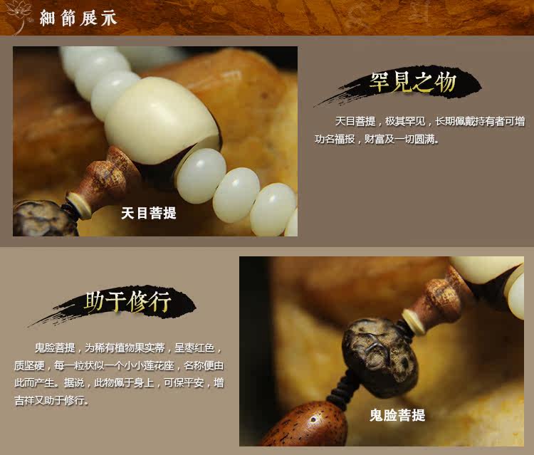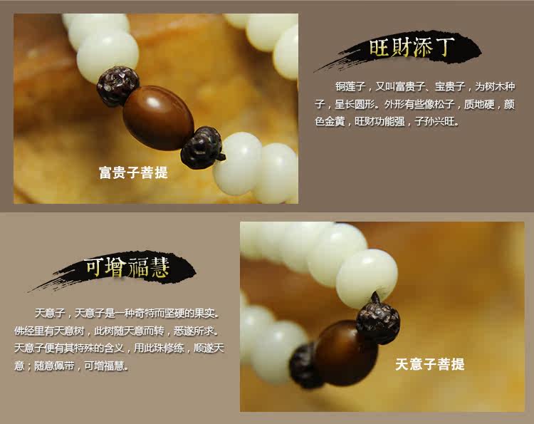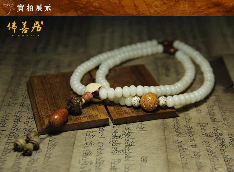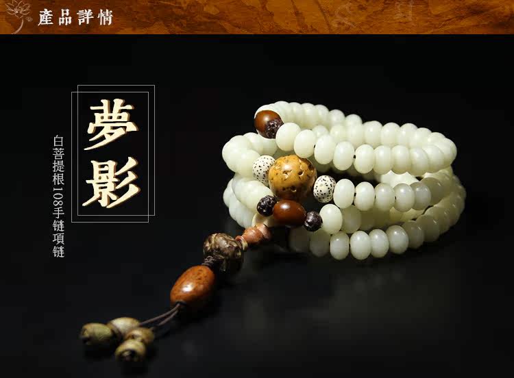 【梦影】白玉菩提根手串108颗菩提子佛珠饰品8*6mm女士手链