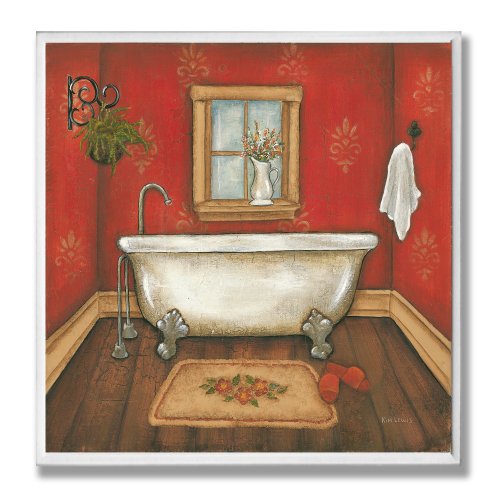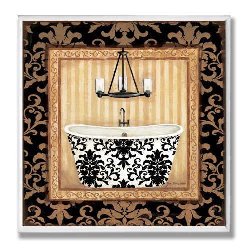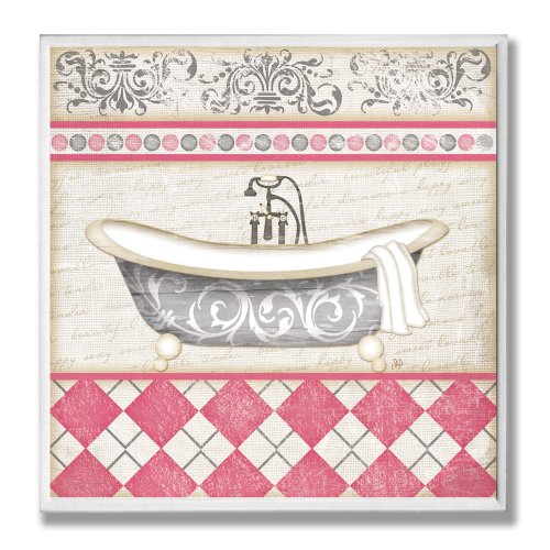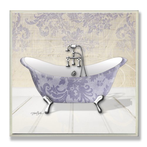 The Stupell Home Decor Collection Purple Damask Claw Foot Tub Bathroom Wall Plaque