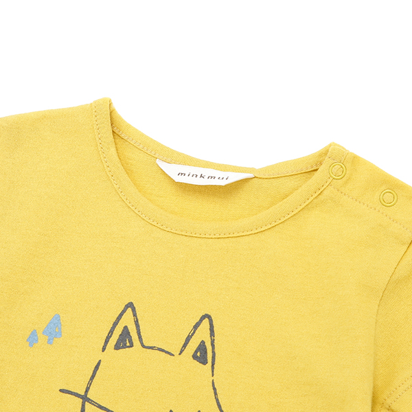 손으로 드로잉한 듯한 여우 캐릭터가 강조된 반팔 티셔츠입니다.