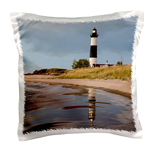 3dRose pc_190090_1 Big Sable Point Lighthouse, Lake Michigan, Ludington Spa, Michigan, Use Pillow Case, 16 x 16"
