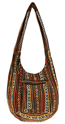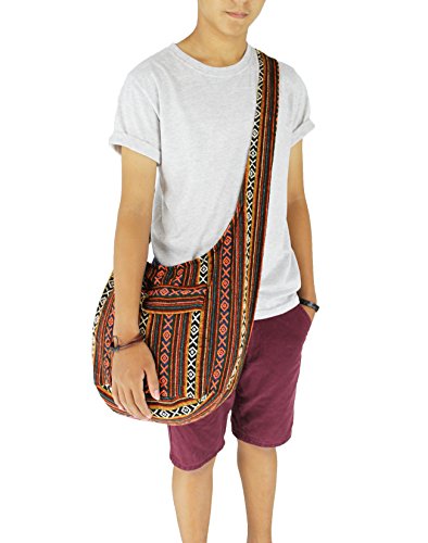 8 AM. Tribal Hmong Striped Ethnic Cotton Boho Sling Shoulder Thai Pattern Crossbody Bag Thai Top Zip Asia Bag (Stripe Orange1)