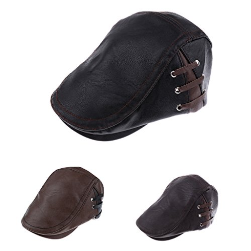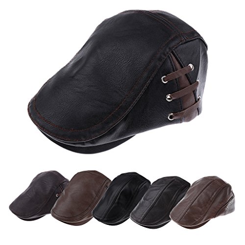 | (MonkeyJack)/Accessories/Hats/DIRECT FROM USA/MonkeyJack Mens Golf Flat newsboy Cabbie duckbill IVY Hat Classic PU Leather Gatsby Caps |