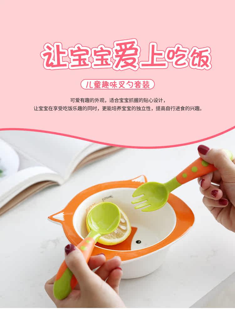 婴儿卡通硅胶勺子叉子套装宝宝吃饭勺子学吃辅食训练勺儿童餐具