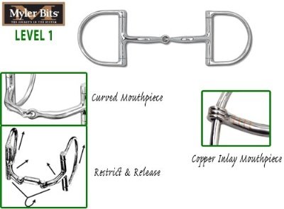 ReleaseDate : 2011-10-17 Studio : Myler Publisher : Myler Binding : Sports Product Description Stainless Steel 3" Dee with Stainless Steel Snaffle (MB 09) Copper Inlay Mouth. About the mouthpiece: the 09 mouthpiece is a more comfortable Myler version of the traditional single-jointed mouthpiece. Although it lacks the bene?ts of a “true” Myler mouthpiece, it has the distinctive curve so the bars of the bit wrap the horse’s bar and lips instead of pinching. The curve also creates more space for the horse’s tongue under the bit. The 09 does not o?er the Independent Side Movement of a true Myler mouthpiece. The 07 is the 09 mouthpiece with a twist. The 07I is the 09 twist in sweet iron. The 09 is popular with riders who are more comfortable with a traditional design, but we recommend the 01, 02, or 03 to get the full bene?t of Myler features at the same Level. From The Level Best for Your Horse by Dale, Ron and Bob Myler. ⓒToklat Originals, Inc. 0