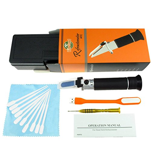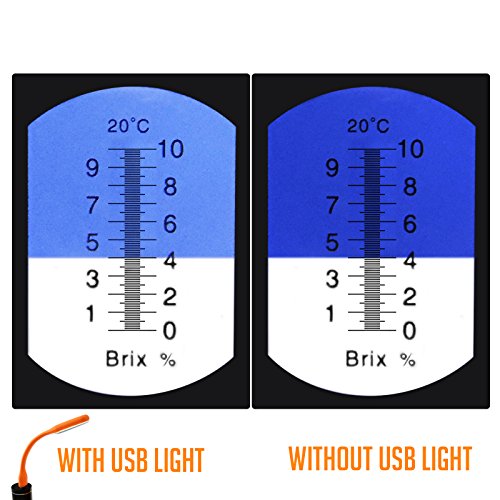 Kibeland Handheld Brix Refractometer 0-10% with Automatic Temperature Compensation ATC, low-concentrated sugar solutions, with EXTRA Mini USB Light