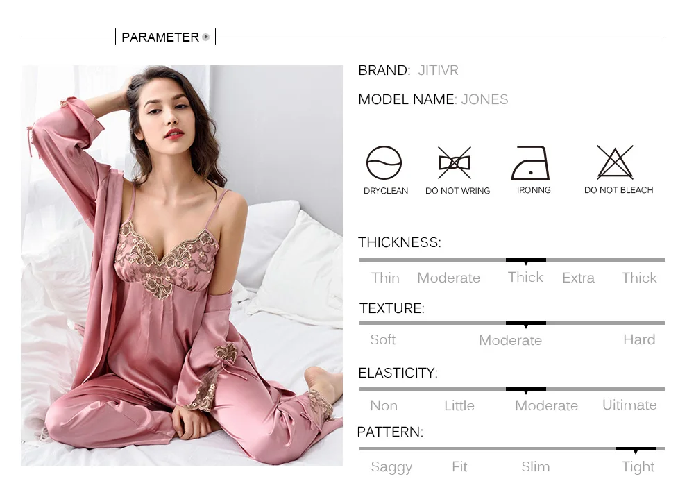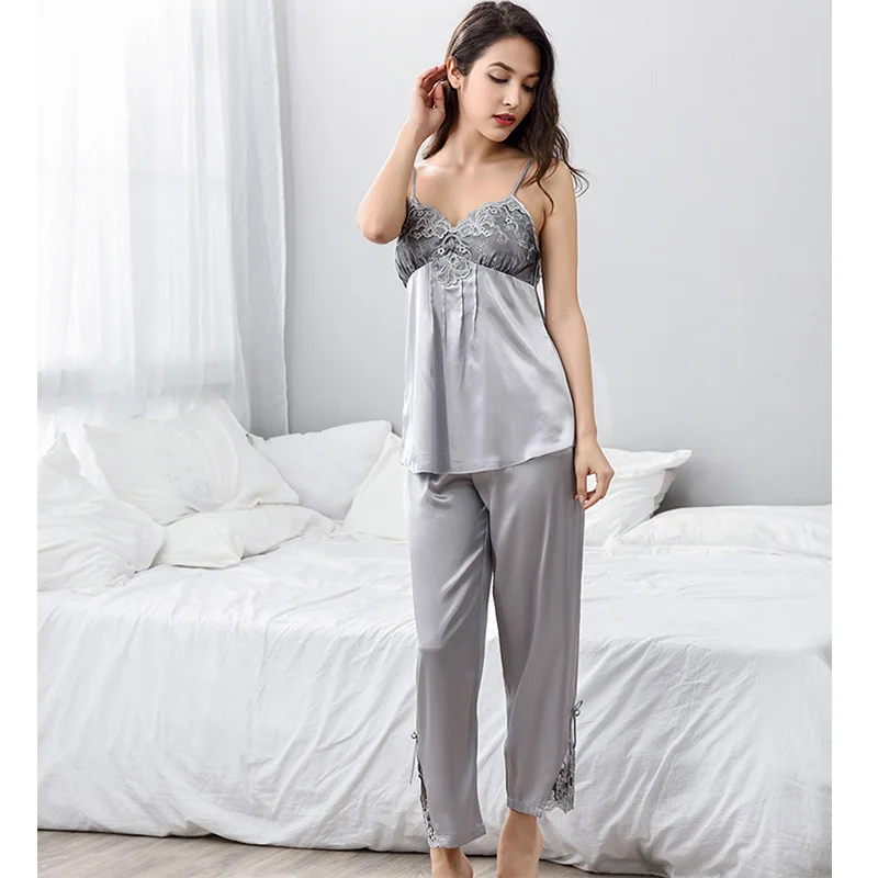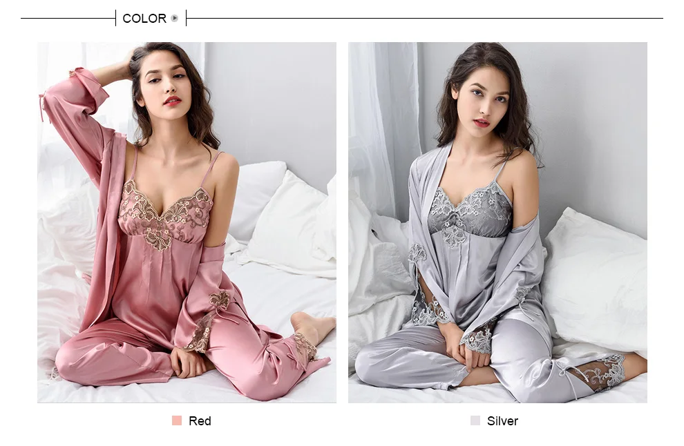 Styles:2016 new lady silk pajamas 3pcs suit women sexy lace nightclothes