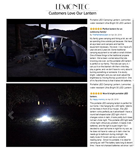 Portable LED camping lantern, lemontec water resistant Ultra Bright 30 LED lantern for hiking, emergencies, hurricanes, outages, storms, camping (3 AA Batteries), 3 Pack