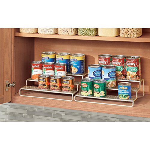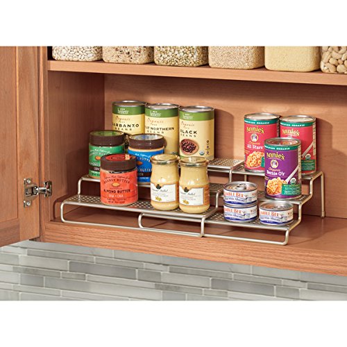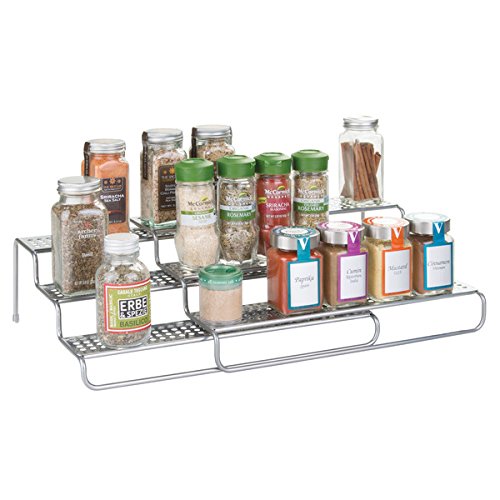 mDesign Expandable Kitchen Spice Rack for Kitchen Pantry, Cabinet, Counter Tops - 3-Tier, Silver