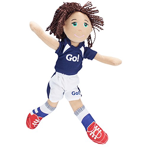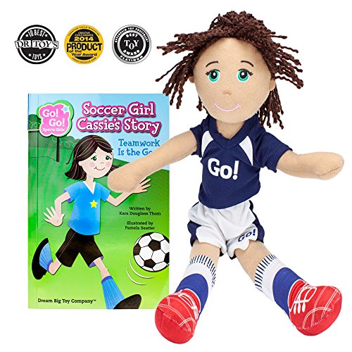 Soccer Girl Cassie is a soft, 14" plush cuddle companion with thick, richly textured yarn hair. She comes with her very own backpack filled with a soccer ball and towel. In her illustrated storybook "Teamwork Is the Goal" Cassie must compete against her best friend Anna! Find out who wins the big game, and learn fun soccer facts, too!