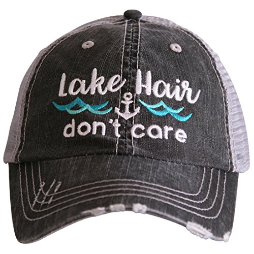 Binding : Apparel Product Description Women will love this distressed trucker baseball hat. It has "Lake hair don't care" embroidered on the front with an embroidered anchor and waves. It is distressed and has a velcro closure at back. The back of the hat is MESH. Choose from mint blue colored waves or pink waves! Get ready for lazy days on the lake this summer vacation! 0
