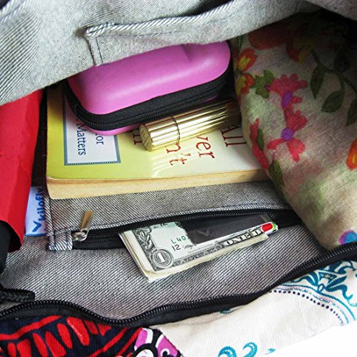 Product Description kilofly Bohemian Top Handle Cloth Handbag Tote is made of cotton cloth with a unique Bohemian artistic look. Easy to carry it with top handles as handbag or shoulder bag. The top zipper assures the security of your personal belongings with inside pockets for sort and separation. It is perfect for parties, school, daily outdoor activities like carrying books, personal belongings, grocery shopping or while travelling. Washing Instruction: Hand wash separately in cold water and avoid soaking; Inner denim texture may fade from frequent washing.