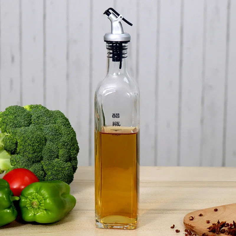 500ml:Labelling of 500ml square glass oil bottle