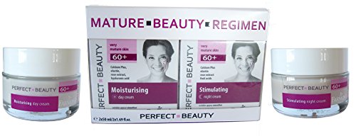 -. Binding : Misc. -. Brand : Farmona -. EAN : 5900117098844 -. Feature : Calcium Plus - advanced next-generation component - via a combination of calcium and inulin, improves the look of skin and facial firmness. / Elastin makes the skin appear more firm and elastic whilst smoothing the appearance of wrinkles, making them appear smaller and less numerous. / Hyaluronic acid provides lasting, moisturization of the skin and smooths the skin's appearance, minimizing the appearance of fine lines and wrinkles. / Hibiscus fruit improves skin tone and lightens the appearance of blemishes and skin discoloration. / Rosehip extract is rich in vitamin C. And Rice bran oil perfectly moisturizes your skin. fighting excessive dryness of the skin. -. MPN : 4853049 -. PackageQuantity : 1 -. PartNumber : 4853049 -. ProductGroup : Beauty -. ProductTypeName : BEAUTY -. Title : Farmona Perfect Beauty Very Mature Skin 60 +Stimulating Night Cream + Moisturizing Day Cream