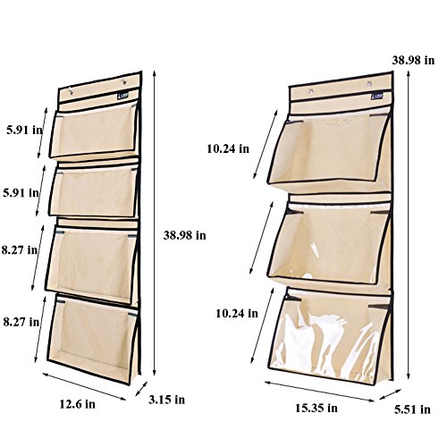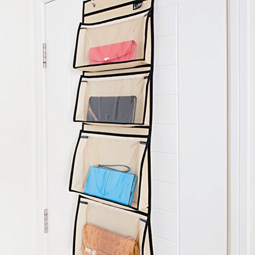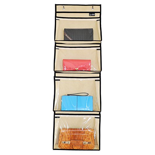 -. Title : Ozzptuu Non Woven Fabric Over the Door Closet Handbag Storage Organizer with PVC Clear Purse Beige