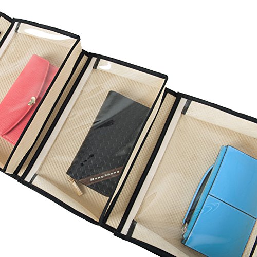 -. Feature : Top quality transparent clear PVC with tear-resistant non-woven fabric. / Pefect for purse and small bag, foldable, satisfied your different demands. / Neatly storing handbag, tote, purses, shoes, umbrella, small blankets, sheets, towels, and other linens. / This closet handbag organizer features clear plastic slots that allow for easy identification of contents. / 3 pocket wide type size: 15.35x38.98 inches(39x99cm); 4 pocket slim type size: 12.6x38.98 inches(32x99cm).