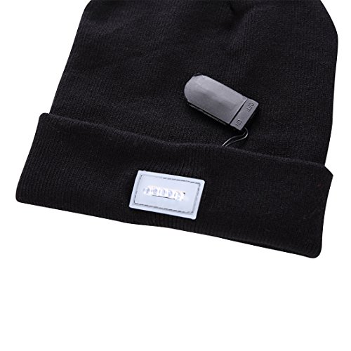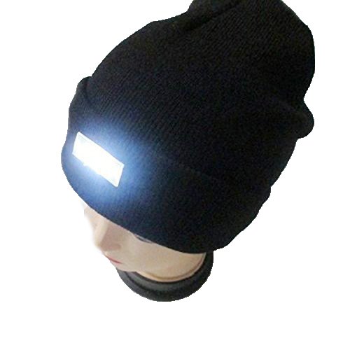 W-plus Unisex 5 LED Knitted Flashlight Beanie Cap for Hunting, Camping, Grilling, Auto Repair, Jogging, Walking, or Handyman Working - One Size Fits Most