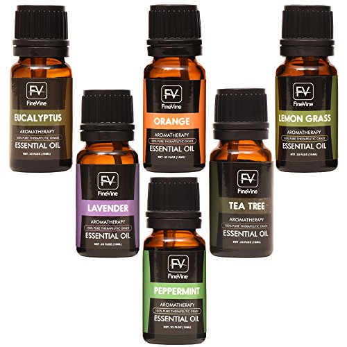 Aromatherapy Top 6 Essential Oils Gift Set - 100% Pure Premium Therapeutic Grade - Lavender, Tea Tree, Eucalyptus, Lemongrass, Orange, Peppermint 10ml.