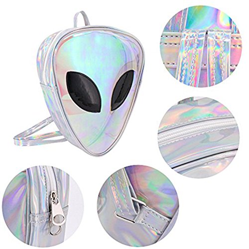 -. Title : Alien Holographic Hologram Backpack Fashion Triangle Rucksack Casual Bag Satchel Handbag Tote Travel Bag