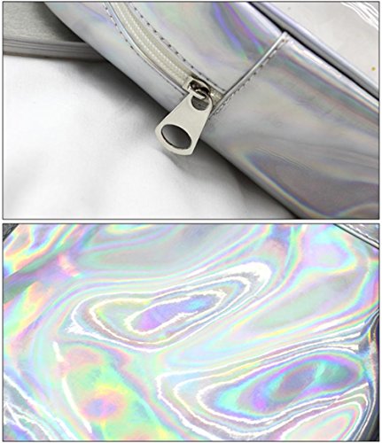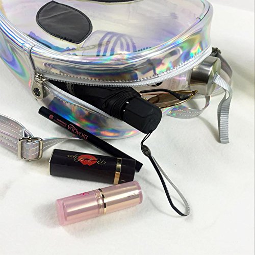 -. Feature : Size:9.1 *3 *11.4 in(L*W*H),Material:PVC.non-deformation, lightweight, portable and comfortable feel. Easy to clean, just wipe it with a damp cloth. / Special design:There are two zipper clasp in the bag,Fits all the essentials,with adjustable shoulder straps. / Shiny and attractive:Transparent aliens triangle design,easy to attract the attention of others,and easy to match any clothing,Unique hologram laser bag will glow under the sunlight. / Fits for ipad, wallet, sunglasses, cards, key, cash, coins, keys, cash, lipstick, Charging cable, earphones, USB Flash , makeup and other items. / Unique shape very eye catching; Suit for shopping,going out,school,travelling;Ideal gift for you kids,It will be your best gift to your family and friends,of course,Whether you use or as a gift to others all worth to try.
