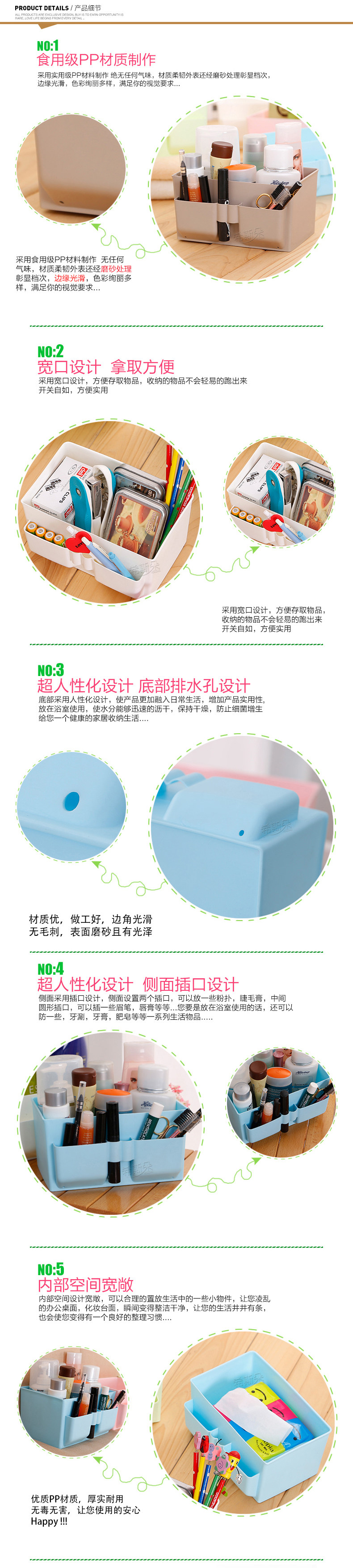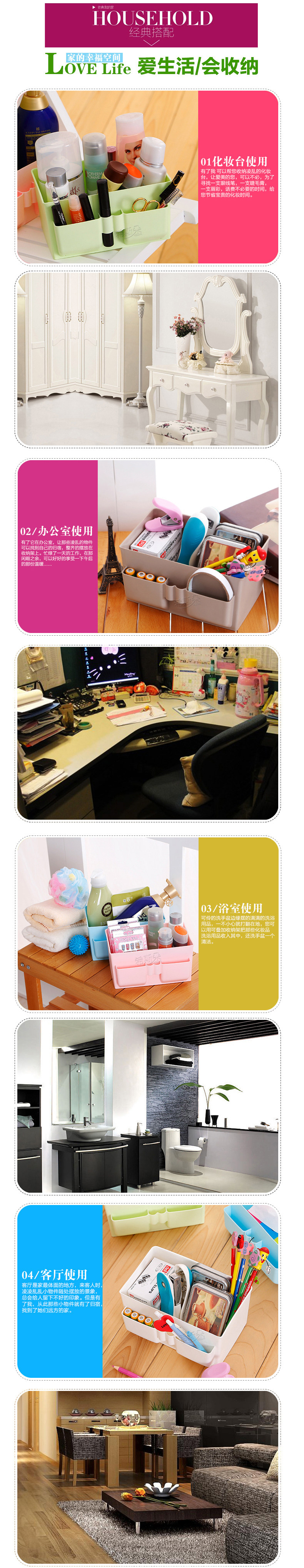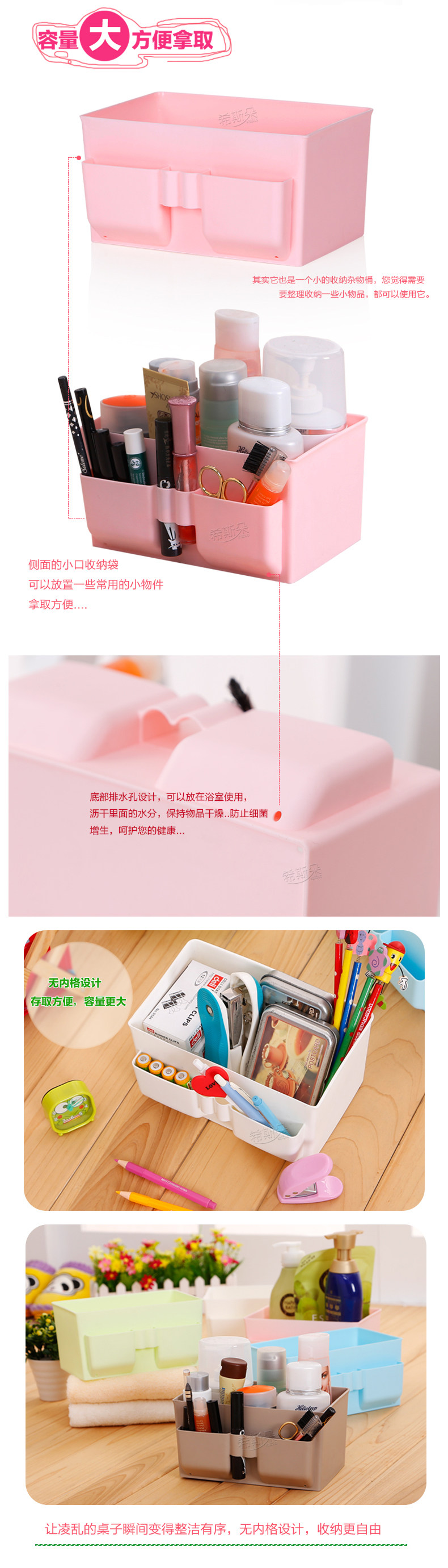 塑料多格化妆品收纳盒 办公桌面杂物整理收纳易清洁化妆盒