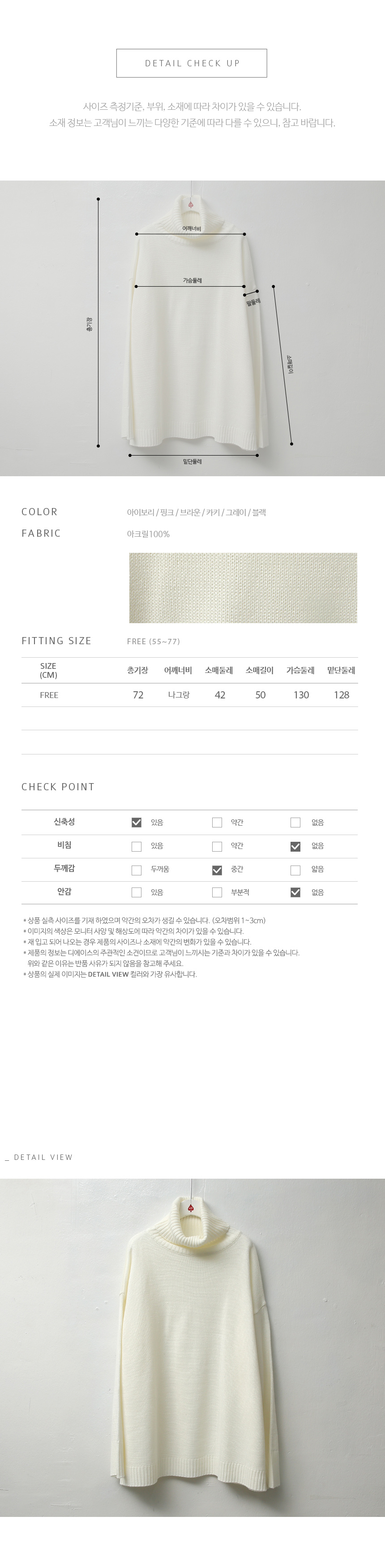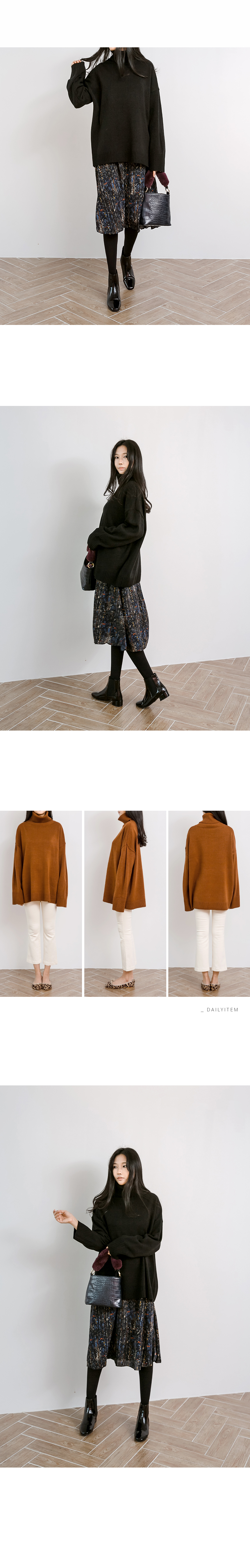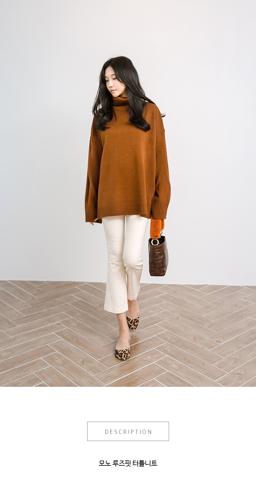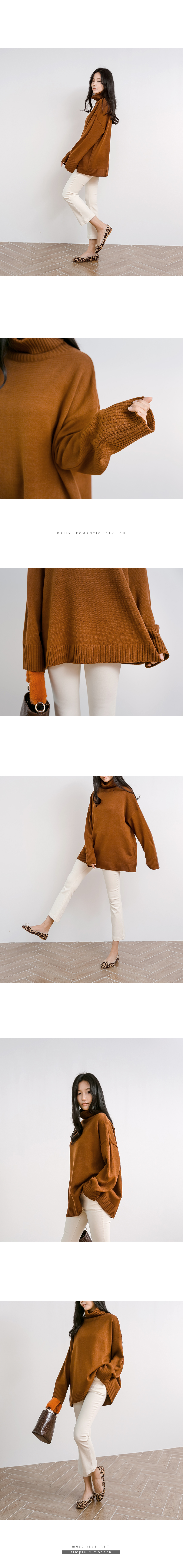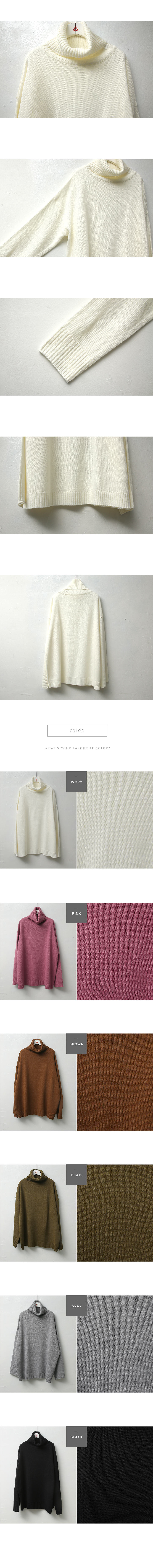 심플하게 툭 떨어지는 오버핏으로 긴 길이감과 턱선까지 올라오는 넉넉한 터들 분량이 멋스러운 니트랍니다^^