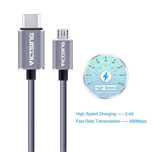 High Speed. This Type-C to Micro USB cable is designed for devices with Type-C connector. It supports the maximum 2.4A fast charging and the speed of sync data transmission up to 480Mbps. It supports most smart phones or tablets with Micro USB connectors.