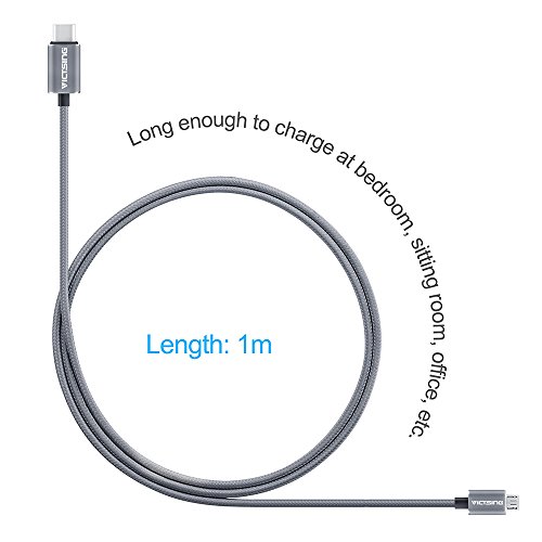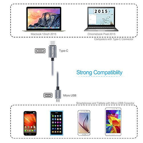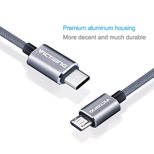 VicTsing 2PCS Type-C to Micro USB Braided Cable with Reversible Connector for New Macbook 12inch 2015, ChromeBook Pixel, Nokia N1 and Other Devices with Type-C Connector-Silver