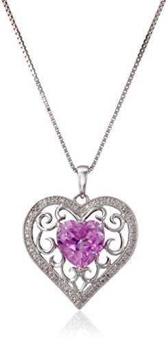 -. Binding : Jewelry -. Brand : Amazon Collection -. Department : womens -. Feature : Sterling silver pendant necklace featuring heart-shape pendant bordered in scrolling filigree and diamond-accented heart frame / Box chain with sP.R.Ing-ring clasp / Gemstones may have been treated to improve their appearance or durability and may require special care. / All our diamond suppliers confirm that they comply with the Kimberley Process to ensure that their diamonds are conflict free. / Imported -. Label : Amazon Curated Collection -. Manufacturer : Amazon Curated Collection -. Model : F5829V8LPSJ1-Parent -. MPN : F5829V8LPSJ1-Parent -. PartNumber : F5829V8LPSJ1-Parent -. ProductGroup : Jewelry -. ProductTypeName : FINENECKLACEBRACELETANKLET -. Publisher : Amazon Curated Collection -. Studio : Amazon Curated Collection -. Title : Sterling Silver Diamond Heart Pendant Necklace, 18"