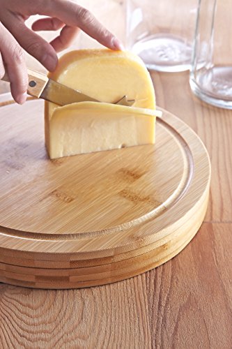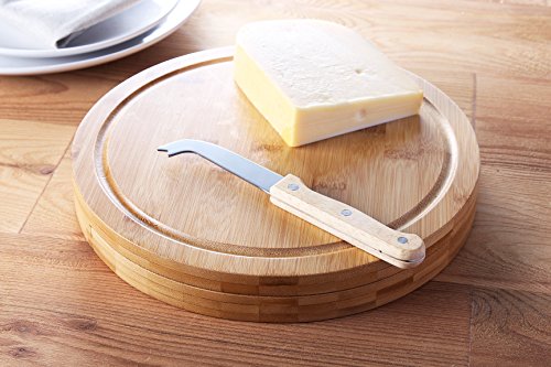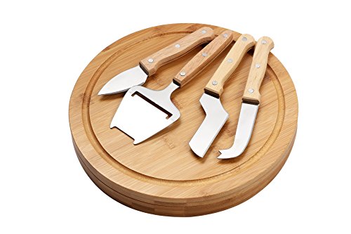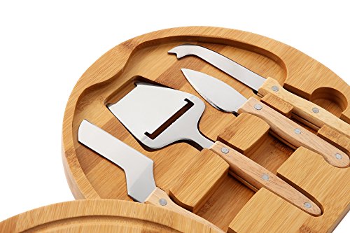 CHEESE BOARD SET - INCLUDES BAMBOO STORAGE CUTTING BOARD AND 5 PIECE KNIFE TOOLS SET - 10.2" X 10.2" X 1.5"