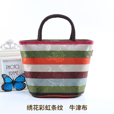 Oxford cloth or canvas fabric with cloth inside, there Hemming, the whole bag body looks cute, beautiful, stylish, compact, but the capacity is still getting bigger, you can put a standard 20cm * 14cm oval boxes, boxes, circles boxes, thick, thin, as long as the size of the fit can be put, you can also put tissue paper / bottles / bottle / folding folded umbrella and some other daily necessities, there is a zipper pocket inside the bag, you can put money in mobile phones and other valuables. Students / workers can be used to improve the lunch, the family residence can be a general Shoulin bags, the street fashion of some daily necessities, Mommy can hold out a number of baby supplies! Super multi-color oh there is always a right for you!