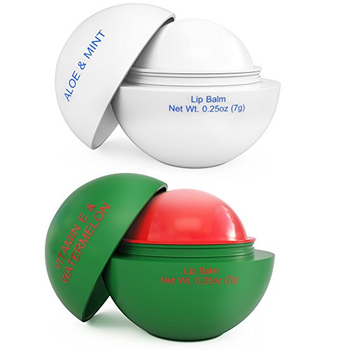 With 2 exotic and delicious flavor, our nourishing lip treatment refreshes and revitalizes lips. Mouthwatering watermelon provides lips with juicy and delicious hydration, locking in moisture for luxurious lip care that makes a noticeable difference. Along with Watermelon flavor, our lip balm variety pack also comes with a refreshing mint flavor perfect for holiday season. The wintertime brings to mind peppermint candy canes. Our healing lip balm gets you in the holiday spirit with its minty fresh fusion of aloe and mint. Packaged in an easy to carry, travel friendly round dome shaped container, this ball shaped lip balm makes applying lip balm not just easy but fun.